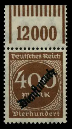400 Mark Wert aus der Dienstmarkenausgabe auf Werten des deutschen Reiches mit schlangenförmigem Aufdruck