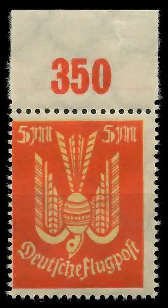 5 M Wert aus der Flugpostausgabe Holztaube, Oberrandbeschriftung ohne Komma