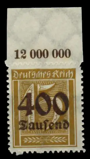 400 Tsd auf 15 Pfg Wert aus der Aufdruckausgabe, Ziffern im Rechteck in geänderten Farben, durchstochen