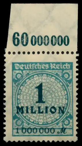 1 Mio Mark Wert aus der Inflationsausgabe Kreis mit Rosetten- (Korbdeckel) Muster, Oberrandplattentype A