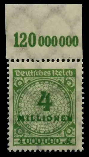 4 Mio Mark Wert aus der Inflationsausgabe Kreis mit Rosetten- (Korbdeckel) Muster, Oberrandplattentype A