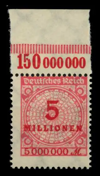 5 Mio Mark Wert aus der Inflationsausgabe Kreis mit Rosetten- (Korbdeckel) Muster, Oberrandplattentype B