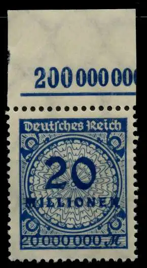 20 Mio Mark Wert aus der Inflationsausgabe Kreis mit Rosetten- (Korbdeckel) Muster, Oberrandplattentype C