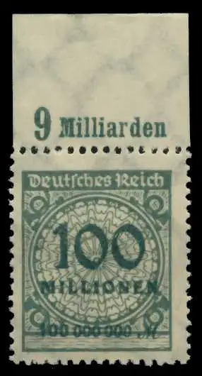 100 Mio Mark Wert aus der Inflationsausgabe Kreis mit Rosetten- (Korbdeckel) Muster, Oberrandplattentype A