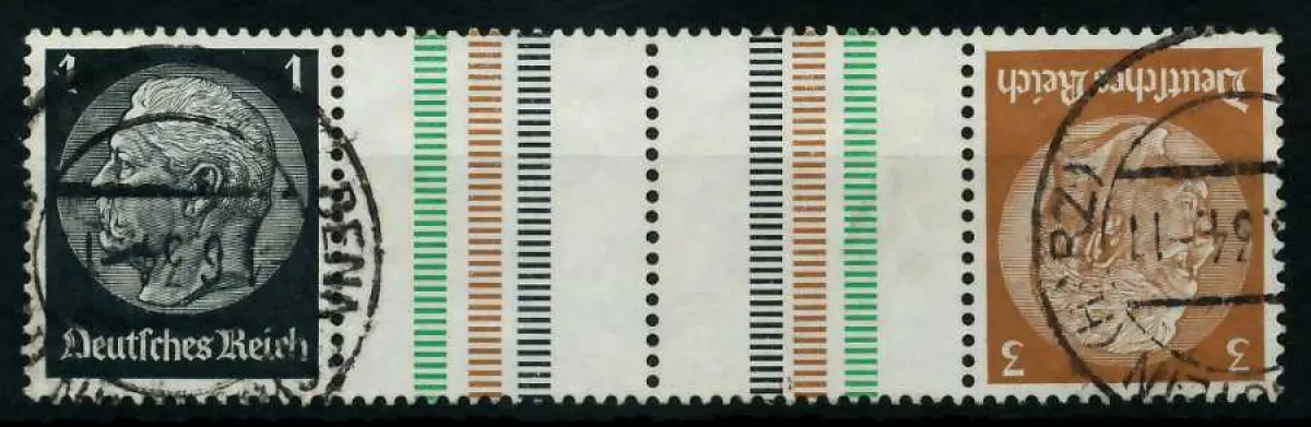 1+Z+Z+3 Zusammendruck aus der Ausgabe Hindenburg mit WZ4 (MichelNr.: 700200, 512, 513)