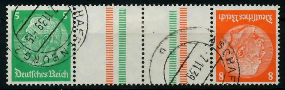5+Z+Z+8 Zusammendruck aus der Ausgabe Hindenburg mit WZ4, Streifen grün und orange nebeneinander (MichelNr.: 700210, 515, 517)