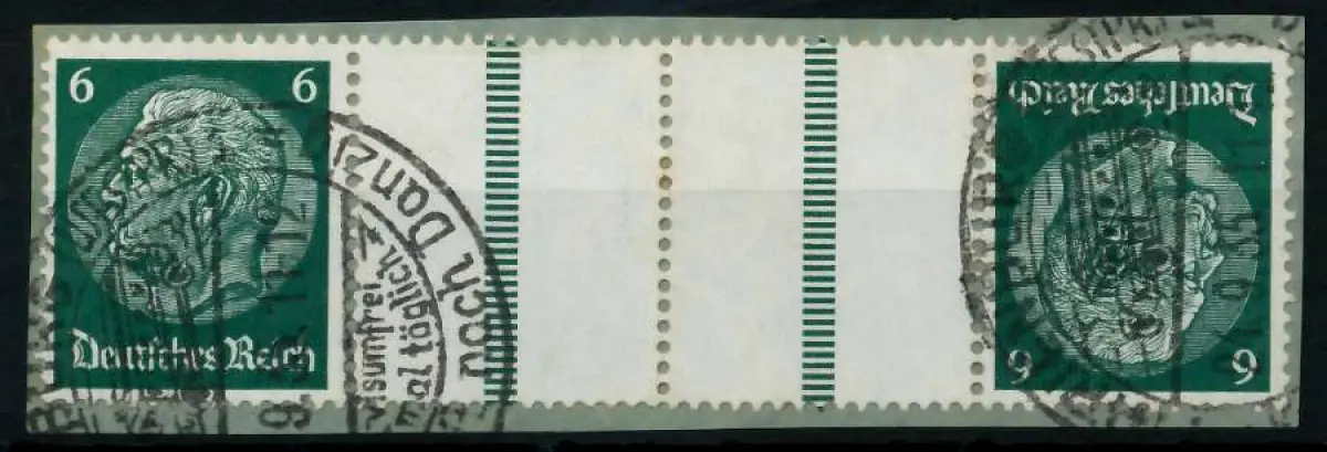 6+Z+Z+6 Zusammendruck aus der Ausgabe Hindenburg mit WZ4, Innenabstand der Streifen 19,5mm (MichelNr.: 700220, 516, 516)