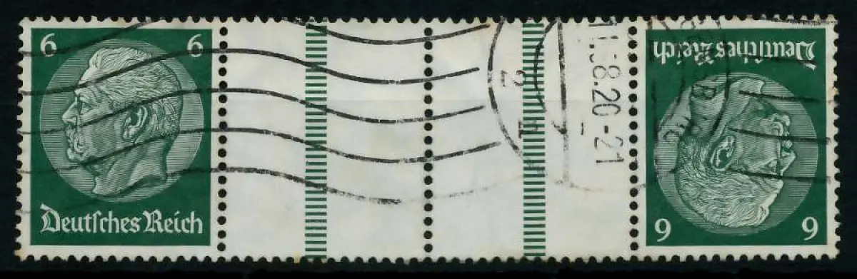 6+Z+Z+6 Zusammendruck aus der Ausgabe Hindenburg mit WZ4, Innenabstand 21mm (MichelNr.: 700220, 516)
