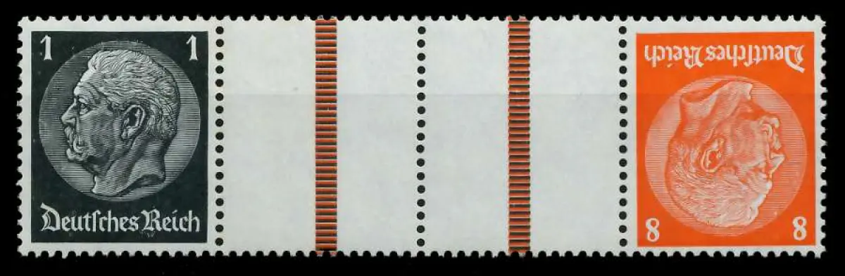 1+Z+Z+8 Zusammendruck aus der Ausgabe Hindenburg mit WZ4, leichte Stockflecken, unauffällig (MichelNr.: 700240, 512, 517)