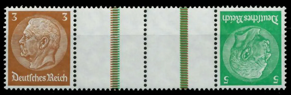 3+Z+Z+5 Zusammendruck aus der Ausgabe Hindenburg, Strichleisten grün und braun mit WZ4 (MichelNr.: 700250, 513, 515)