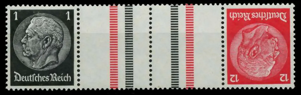 1+Z+Z+12 Zusammendruck aus der Ausgabe Hindenburg mit WZ4 (MichelNr.: 700260, 512, 519)