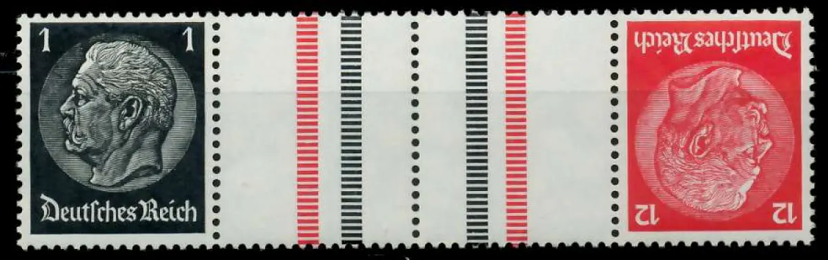 1+Z+Z+12 Zusammendruck aus der Ausgabe Hindenburg mit WZ4 (MichelNr.: 700260, 512, 519)