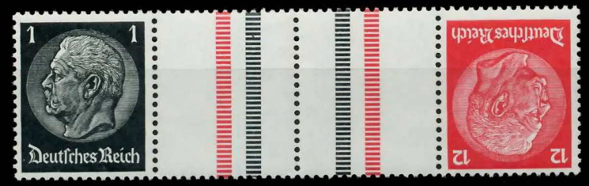 1+Z+Z+12 Zusammendruck aus der Ausgabe Hindenburg mit WZ4 (MichelNr.: 700260, 512, 519)