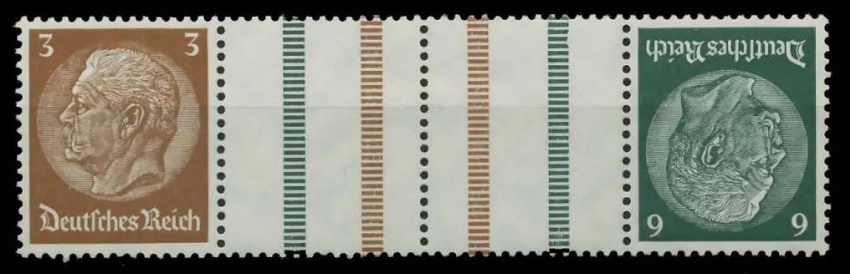 3+Z+Z+6 Zusammendruck aus der Ausgabe Hindenburg mit WZ4, Strichleistenabstand 9mm (MichelNr.: 700270, 513, 516)