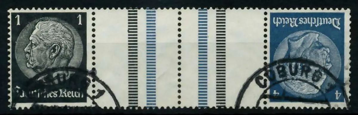 4+Z+Z+1 Zusammendruck aus der Ausgabe Hindenburg mit WZ4, Innenabstand 15mm (MichelNr.: 700300, 514, 512)