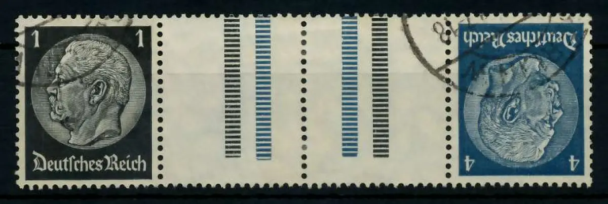 4+Z+Z+1 Zusammendruck aus der Ausgabe Hindenburg mit WZ4, Innenabstand 15mm (MichelNr.: 700300, 514, 512)