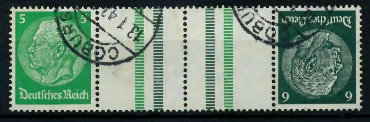 5+Z+Z+6 Zusammendruck aus der Ausgabe Hindenburg mit WZ4, Innenabstand 15mm (MichelNr.: 700320, 515, 516)