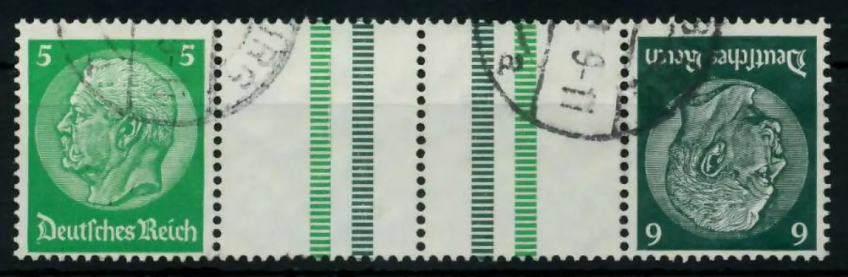 5+Z+Z+6 Zusammendruck aus der Ausgabe Hindenburg mit WZ4, Innenabstand 15mm (MichelNr.: 700320, 515, 516)
