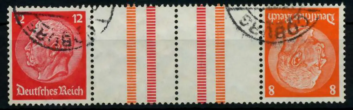 12+Z+Z+8 Zusammendruck aus der Ausgabe Hindenburg mit WZ4, Innenabstand 15mm (MichelNr.: 700330, 519, 517)