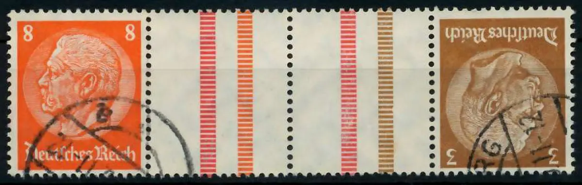 8+Z+Z+3 Zusammendruck aus der Ausgabe Hindenburg mit WZ4 (MichelNr.: 700340, 517, 513)