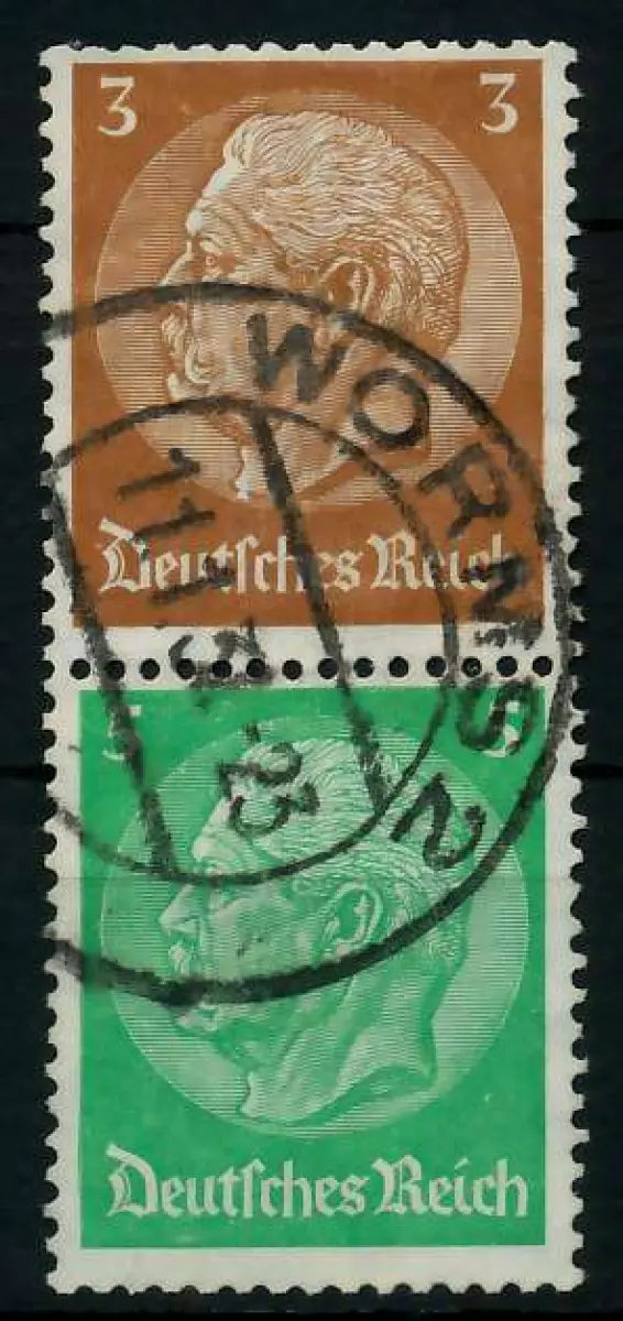 3 + 5 Zusammendruck aus der Ausgabe Hindenburg mit WZ4 (MichelNr.: 301270, 513, 515)