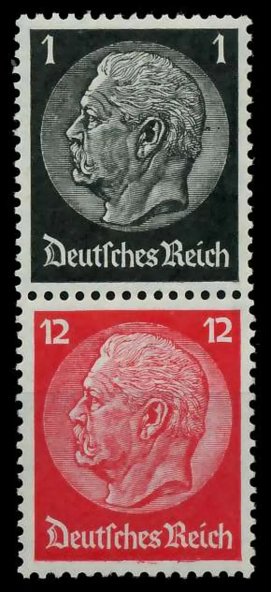 1 + 12 Zusammendruck aus der Ausgabe Hindenburg mit WZ4 (MichelNr.: 301470, 512, 519)