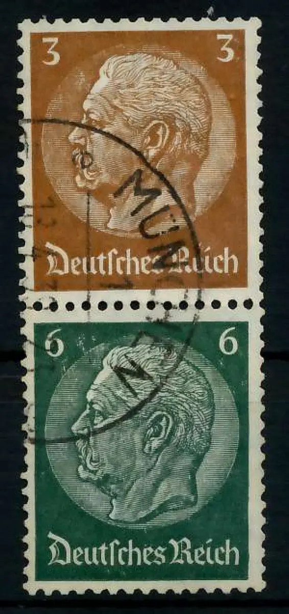 3 + 6 Zusammendruck aus der Ausgabe Hindenburg mit WZ4 (MichelNr.: 301510, 513, 516)
