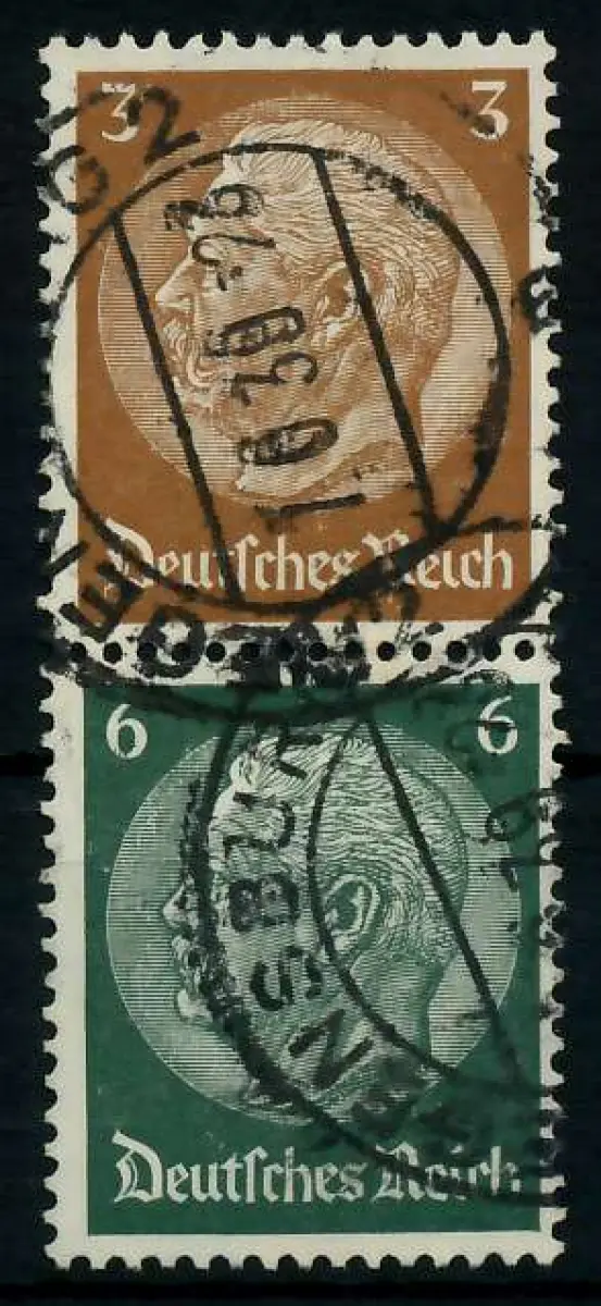 3 + 6 Zusammendruck aus der Ausgabe Hindenburg mit WZ4 (MichelNr.: 301510, 513, 516)