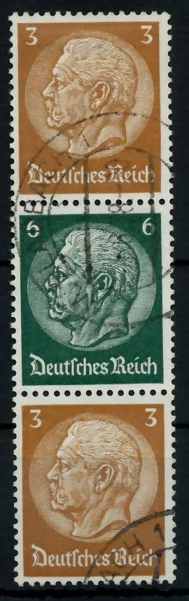 3 + 6 + 3 Zusammendruck aus der Ausgabe Hindenburg mit WZ4 (MichelNr.: 301520, 513, 516, 513)