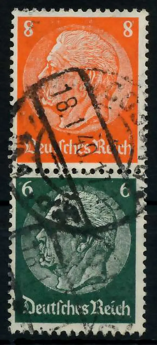 8 + 6 Zusammendruck aus der Ausgabe Hindenburg mit WZ4 (MichelNr.: 301610, 517, 516)