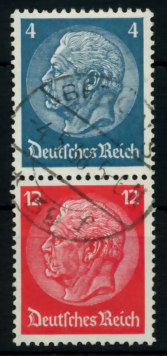 4 + 12 Zusammendruck aus der Ausgabe Hindenburg mit WZ4 (MichelNr.: 301630, 514, 519)