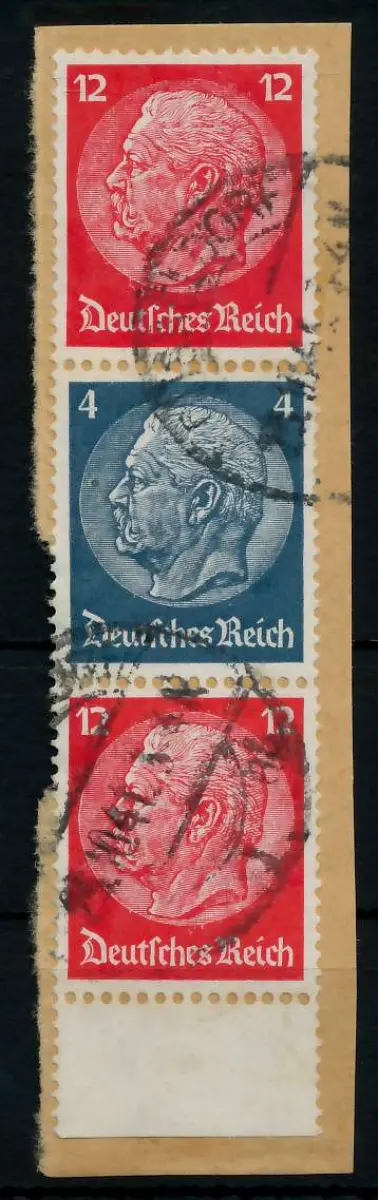 12 + 4 + 12 Zusammendruck aus der Ausgabe Hindenburg mit WZ4 (MichelNr.: 301660, 519, 514, 519)