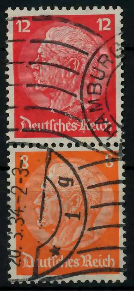 12 + 8 Zusammendruck aus der Ausgabe Hindenburg mit WZ4 (MichelNr.: 301990, 519, 517)