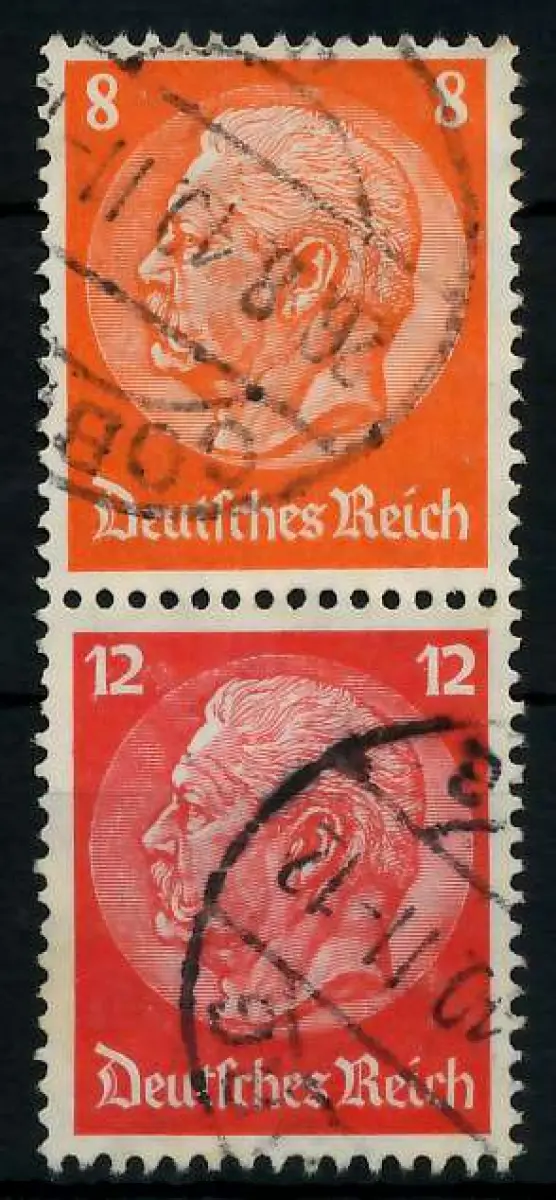 8 + 12 Zusammendruck aus der Ausgabe Hindenburg mit WZ4 (MichelNr.: 302010, 517, 519)
