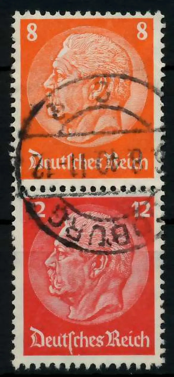 8 + 12 Zusammendruck aus der Ausgabe Hindenburg mit WZ4 (MichelNr.: 302010, 517, 519)