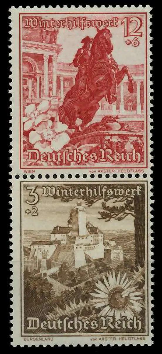 12 + 3 Zusammendruck aus der Ausgabe Winterhilfswerk 1938 (MichelNr.: 302490, 680, 675)