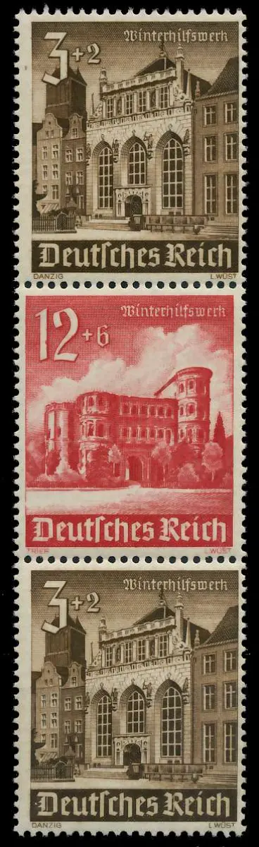 3 + 12 + 3 Zusammendruck aus der Ausgabe Winterhilfswerk 1940 (MichelNr.: 302690, 756, 751)