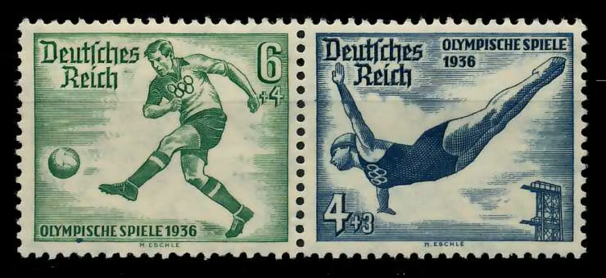 6 + 4 Zusammendruck aus der Ausgabe Olympiade 1936 (MichelNr.: 101050, 611, 610)
