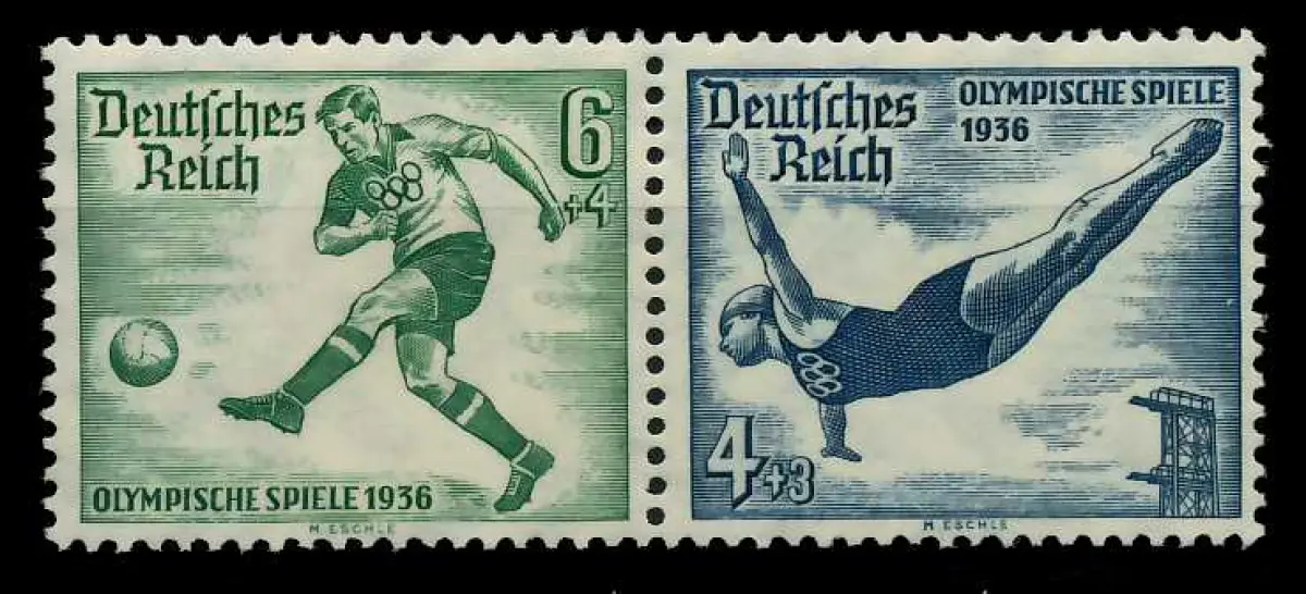 6 + 4 Zusammendruck aus der Ausgabe Olympiade 1936 (MichelNr.: 101050, 611, 610)