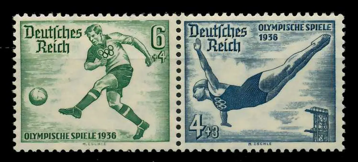 6 + 4 Zusammendruck aus der Ausgabe Olympiade 1936 (MichelNr.: 101050, 611, 610)
