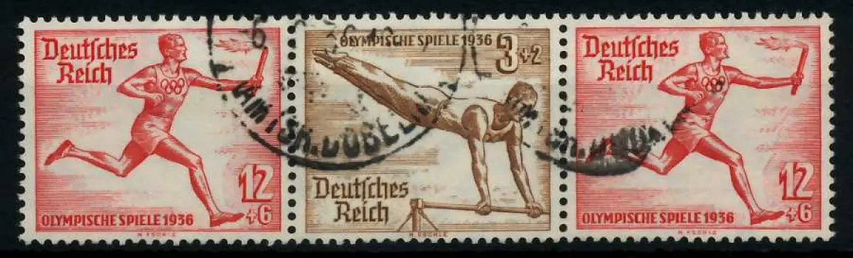 12 + 3 + 12 Zusammendruck aus der Ausgabe Olympiade 1936 (MichelNr.: 101100, 613, 609, 613)