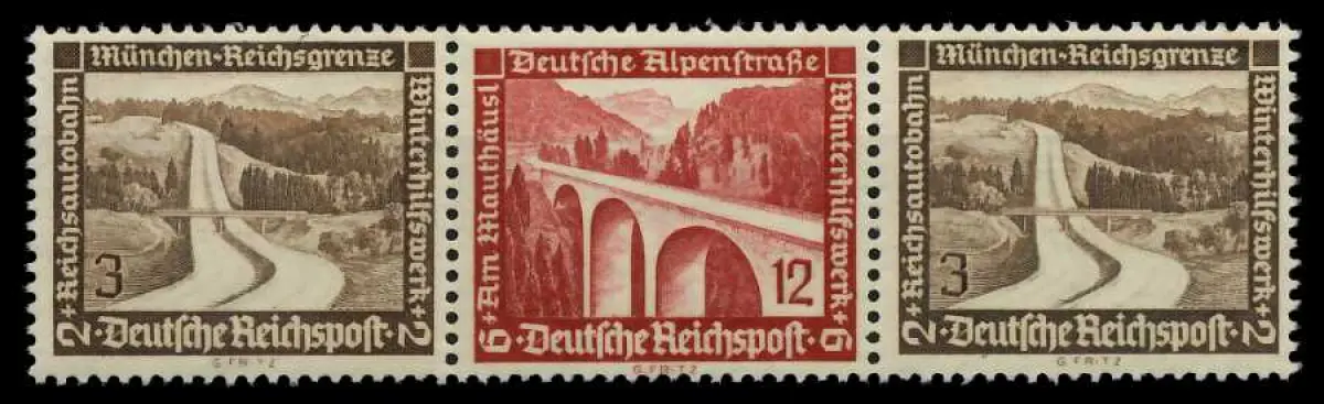 3 + 12 + 3 Zusammendruck aus der Ausgabe Winterhilfswerk 1936 (MichelNr.: 101160, 634, 639, 634)