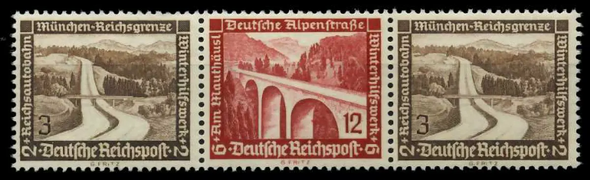 3 + 12 + 3 Zusammendruck aus der Ausgabe Winterhilfswerk 1936 (MichelNr.: 101160, 634, 639, 634)