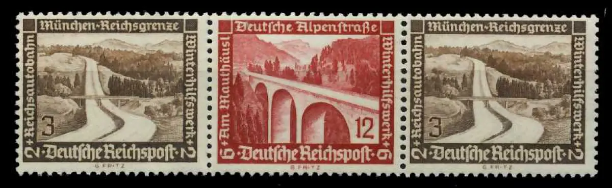 3 + 12 + 3 Zusammendruck aus der Ausgabe Winterhilfswerk 1936, eine Linie leicht gefaltet (MichelNr.: 101160, 634, 639, 634)