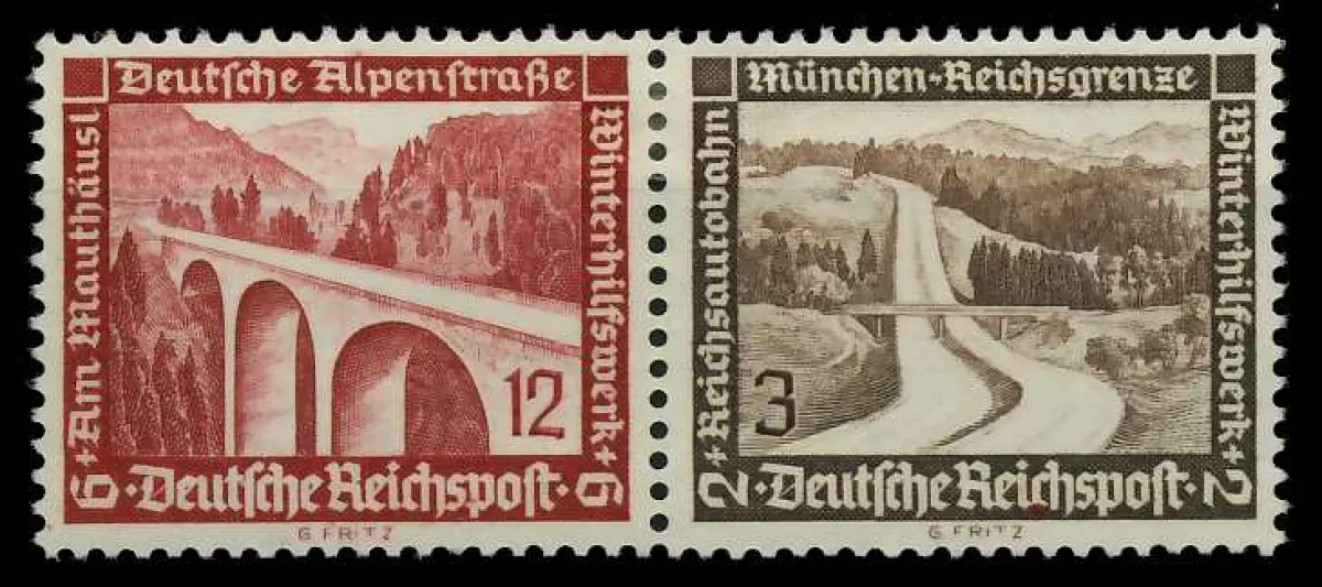 12 + 3 Zusammendruck aus der Ausgabe Winterhilfswerk 1936 (MichelNr.: 101170, 639, 634)