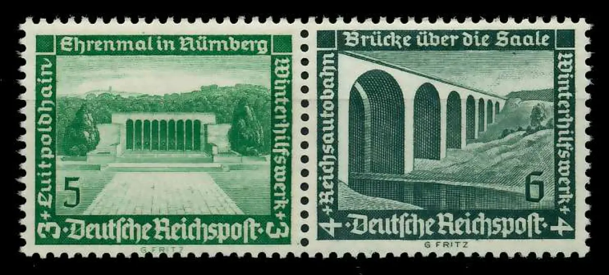 5 + 6 Zusammendruck aus der Ausgabe Winterhilfswerk 1936 (MichelNr.: 101190, 636, 637)