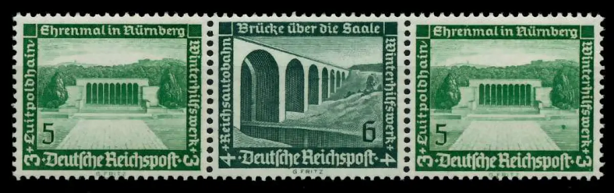 5 + 6 + 5 Zusammendruck aus der Ausgabe Winterhilfswerk 1936 (MichelNr.: 101200, 636, 637, 636)