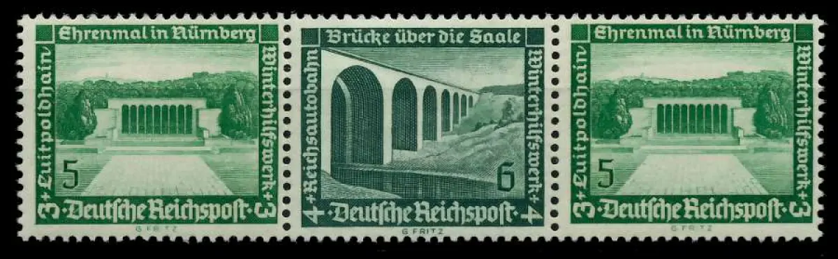 5 + 6 + 5 Zusammendruck aus der Ausgabe Winterhilfswerk 1936 (MichelNr.: 101200, 636, 637, 636)