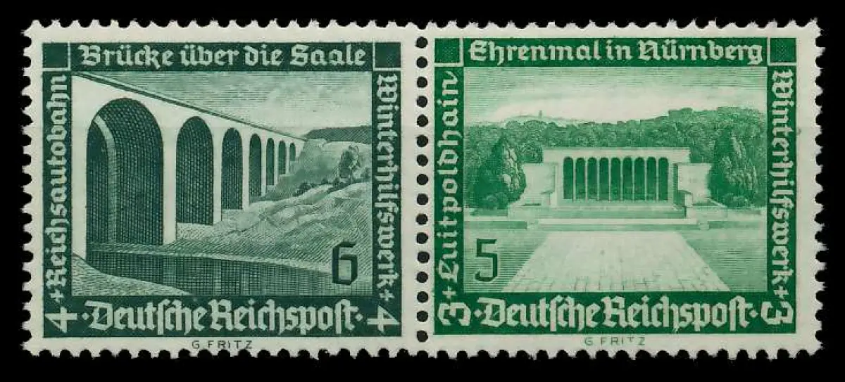 6 + 5 Zusammendruck aus der Ausgabe Winterhilfswerk 1936 (MichelNr.: 101210, 636, 637)