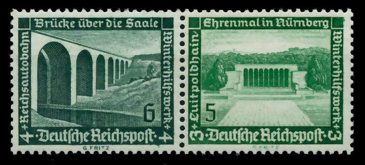 6 + 5 Zusammendruck aus der Ausgabe Winterhilfswerk 1936 (MichelNr.: 101210, 636, 637)
